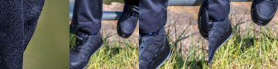 CE EN 20345:2011 SRA SB. Breathable. Durable. Lightweight. Low cut sports look. Ventilating mesh and lining wicks away moisture. Injection show moulds for this style are same for men and women; size range therefore starts with women's and runs through into men's. Padded tongue and collar. Energy absorption heel. Moulded PU scruff cap. SRA slip resistance. Spare insole set. Steel toecap. Oil resistant. Heel loop.