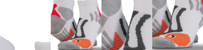96% nylon/4% elastane. Coolmax® fabric. Durable knit. Anti-bacterial. Quick dry. Anatomically shaped with reinforcement for optimum protection and compression. Ribbed ankle cuff. Cushioned heel and toe. Arch support.