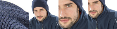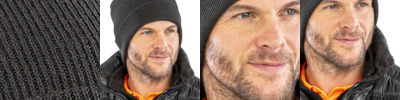 Beanie made from 50% recycled materials with Thinsulate. 3M label sewn outside. Double thickness. Full size style. Deep Cuff. Soft-feel knit.