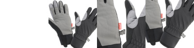100% polyester. Polyurethane palm patches for added grip. Polyester inner padding. Tear and release wrist strap.