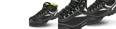 PU, leather and mesh upper. EN ISO 20345: 2011 S1P SRC. Lightweight low profile sports style. Breathable. Polycarbonate composite toe cap. Composite midsole for underfoot protection. EVA/rubber sole. Scuff cap. SRC slip resistance. Anti-static. Reflective detail. Padded tongue. Comes with spare laces, black/grey, yellow/black and black.