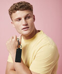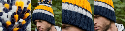 100% soft spun acrylic. Polyester shearling lining. Heavyweight ribbed knit. Bold three colour stripe design. Oversized luxury pom pom. Cuffed design. Tear out label.