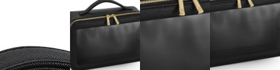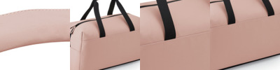 100% recycled polyester. Matte-look PU coating. PVC free. Water repellent fabric. Webbing carry/shoulder straps. Self fabric handle wrap. Extra long main zip compartment. Double layer base panel. Multi-purpose use. Tear out label. Capacity 28 litres.