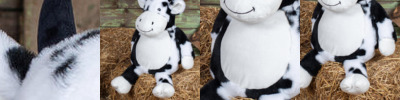 Soft plush Zippie cow with contrast face and hooves. Sewn eyes and mouth. White panel on tummy, perfect for decoration. Zip access on base for direct access onto the tummy for decoration. Removable, separate inner head and body stuffing. Can be embroidered, vinyl, and sublimation printed. Complies with EN71 European Toy Safety regulations. Remove all hang tags and their fasteners before giving this item to a child. Suitable for all ages.