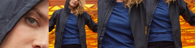 Recycled polyester outer. Waterproof 5000mm with taped seams. Breathable 5000g and windproof. Grown on adjustable hood. Full length nylon zip. Two front zip pockets. Elasticated bound cuffs and hem. Reflective detail. Unbranded size label.