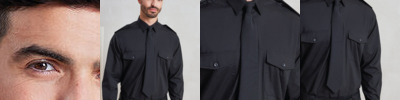 Stiffened Collar, epaulettes on shoulders, two mitred pleated pockets with button fastened flaps, combined pen pocket on left breast pocket, long sleeves with button fastened cuffs. Easycare, soil resistant finish. Size Collar 14½" 15" 15½" 16" 16½" 17" 17½" 18" 18½" 19"