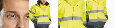 Water resistant. Windproof. Result 3 layer Softshell technology. Breathable. Soft stretch fabric. Comfortable active cut. Fashionable shaped longer back panel. Full front zip fastening. 2 zip closing side pockets, 1 zip closing chest pocket, large inside pockets and 1 inside phone pocket. Adjustable shockcord hem. Inner storm flap to neck and collar. Decorative front yoke. 50mm sewn in safety tapes incorporating 3M™Scotchlite™ reflective materials. Concealed access for Print and Embroidery. Waterproof and breathable fabric.