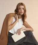PU backing and lining. Saffiano fine grain. Soft-touch lining. Zipped valuables pocket. Front flap with magnetic closure. Detachable and adjustable cross-body strap. High-shine gold metal zip. Tear-away label for ease of rebranding.