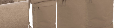 100% recycled 600D polyester. Water repellent fabric. Minimalist styling. Grab handle. Padded air mesh back panel. Magnetic roll-top closure. Padded laptop compartment, compatible up to 11". Front zip pocket. Side zip pocket. Internal slip pocket. Rear luggage strap. Self colour PU zip pulls. Tear out label. Capacity 12 litres.