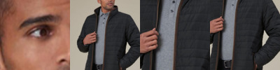 Polyester outer. In transition to using recycled polyester. Repreve® recycled padding. Showerproof. Collar high full length two way zip. Inner zip pocket. Two front zip pockets. Contrast faux suede binding. Adjustable drawcord hem with toggles.