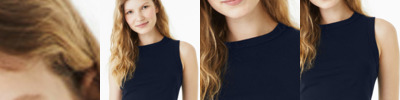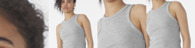 90% airlume combed ringspun cotton/10% polyester. Pre-shrunk. Fitted style. 1x1 micro rib. High neck. Racer back. Side seams. Cropped length. Tear out label.