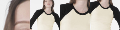 Athletic heather 90% airlume combed ringspun cotton/10% polyester. Pre-shrunk. Fitted style. 1x1 micro rib. Bound contrast neckline. Contrast raglan sleeves. Side seams. Cropped length. Tear out label.