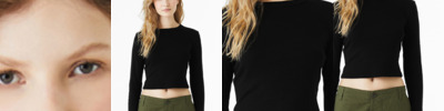 90% airlume combed ringspun cotton/10% polyester. Pre-shrunk. Fitted style. 1x1 micro rib. Bound neckline. Side seams. Cropped length. Tear out label.