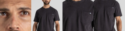 100% organic cotton. Ribbed collar. Contrast taped neck. Contrast heavy chain stitch across shoulders and neck. Underarm odour control patches. Twin needle sleeves and hem. Branding on centre chest.