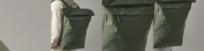 Contains 100% certified recycled polyester. Water-repellent fabric. Minimalist styling. Magnetic roll-top closure. Padded laptop compartment, compatible up to 15.6". External pocket for easy access to internal laptop compartment. Zipped side pocket for bottle/umbrella. Exterior zipped front pocket for easy decoration. Internal slip pocket. Padded air mesh back panel. PU, self-coloured zip pulls. Rear luggage strap. Padded, adjustable mesh shoulder straps. TearAway label for ease of rebranding.