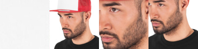 Classic trucker with white front panel. Great for screen printing and embroidery. 5-panel cap with buckram front lining, and classic mesh back-quilted comfort sweatband. 4" high crown, and 8 rows of stitching on flat visor. Matching plastic adjustable str