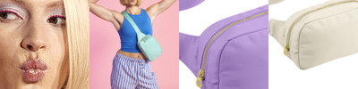 Premium fabric and finish. Bright colour pop palette. Zipped main compartment. Brushed gold metal zip and pull. Adjustable webbing cross-body strap. TearAway label for ease of rebranding. Contains recycled polyester.