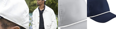 100% Recycled polyester Coolmax® fabric sweatband. 5-panel design. Mid-profile. Contrast rope detail. Semi-structured front panel. Semi-curved peak. Stitched ventilation eyelets. Snapback size adjuster. TearAway label for ease of rebranding.