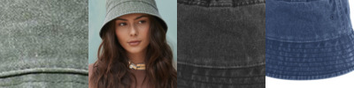 Kids bucket hat. Three colourways. Top-stitched brim detail. Flat top. Elasticated back. Suitable for decoration.
