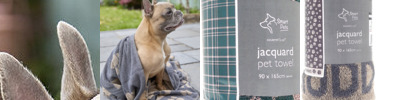 Jacquard muddy paws design dog towel. Machine washable. Jumbo size: 90 x 165cm.