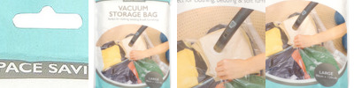 Vacuum storage bag. Space-saving design. Available in two sizes: M (60 x 80cm) and L (90 x 120cm).
