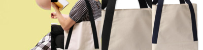 Midweight tote bag. Folded hem at top edge. Bottom and side soufflé. Long self-fabric handles with cross-stitch for reinforcement. Inside self-fabric pocket. Single-needle stitch at top edge.