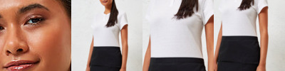 Seamless twin needle 1/2" collar. Taped neck and shoulders. Near cap sleeves for comfort. Side seam construction with stylish tapered fit. Twin needle sleeve and bottom hems.