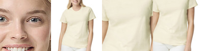 Deluxe 30's Softstyle® yarns. Wide straps. Rib knit trim applied to neckline and armholes. Twin needle bottom hem. Quarter-turned to eliminate centre crease.