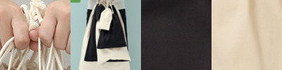 Stuff bag. Double drawcord closure. Natural pull ties. Certified 150gsm organic cotton.