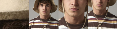 One size fits most. Chin strap with leather toggle. Mesh eyelets. Press stud side turn-ups. Elasticated cord size adjuster with toggle. This hat offers protection against sunlight - UPF50+. Conforms to BS 8466 Size: One Size