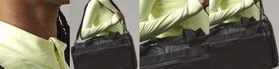 Retractable tow handle. Grab handle. Zippered front pocket. Internal compression straps. Side zippered pocket.