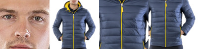 Fashionable quilted design. Contemporary fit. Super air-soft handle with hand filled polyester fibre. Uniquely light for such a padded garment. Quiet to wear. Super lightweight and warm. Easy to pack, compact stowage.