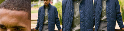 Quilted water repellent micro poplin. Thermo-Guard insulation. Polyester taffeta lining. 2 Lower patch pockets with side hand warmer entry. Back vents with stud fastening. Internal side seam zipped embroidery access.