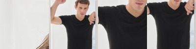 Feel good men's stretch t-shirt with enzyme wash for unique soft hand-feel. 96% cotton, 4% elastane for improved fit, comfort and shape retention. Modern long-line fit. V-neck with back neck binding and soft stretchy rib neckline. Features new tearable removable label.