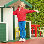 Waist with elasticated drawcord and stopper. Non-scratch, self coloured YKK zips. Short shear, low pile, breathable, pill resistant fabric. Low yoke positioning to accommodate decoration. Matching colour, herringbone back neck tape. Elasticated cuffs. Also available in adults