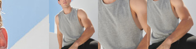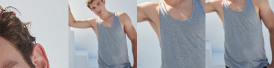 Tear-out SF (Skinnifit) label. Muscle-cut racer-back. Long-line. Self-fabric binding around neckline and armhole. Twin needle straight hem.