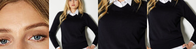 1x1 rib linked V neck. 1x1 rib cuffs and welt. Kustom Kit woven back neck label. Size 8, 10, 12, 14, 16, 18, 20