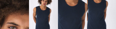 Athletic vest. Deep round neck with piping in self fabric. Piping in self fabric at armholes. Bottom hem with double topstitching. Tubular construction.