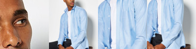 1x1 rib flat knit collar and cuffs. Double-stitched armholes, shoulders and cuffs. Side vents. 3 button narrow placket with slanted top. Taped back neck and shoulder seams. Twin-needle hem. Half moon back yoke. Spare button. Superwash® 60° swing ticket. Kustom Kit® tear out label.