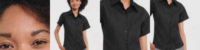 Innovative premium business shirt in a classic style. At the forefront of non-iron technology, this new fabric is designed to keep the wearer looking and feeling smart all day long. Stylish and relaxed long edged collar with fashionable twin button fastening. Shaping at the waist for flattering feminine silhouette. Double turnback hem on sleeves with rounded hem.