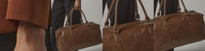 Quality full grain leather look PU. Fully lined in pinstriped fabric. Snap fastening fold down ends. Vintage style metal fittings. Internal valuables pocket. Internal baseboard. Extra long main compartment zip for easy access. Self fabric carry handles. Can be carried by hand or over the shoulder.
