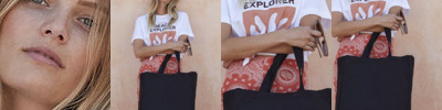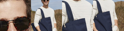 Cotton carry handles. Can be carried by hand or over the shoulder. Handle length: 65 cm.