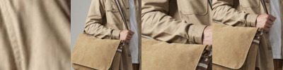 Antique brass effect fittings, adjustable webbing shoulder strap, padded base, zippered main compartment, dual rear pouch pockets and Rip-Strip™ closure.