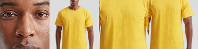 Pre-shrunk jersey. Seamless double needle collar, taped neck and shoulders. Double stitched sleeve and waist hem. Quarter-turned body to eliminate centre crease. Ultra tight knit surface excellent for screenprint and embroidery.