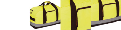 A very useful fluo bright waterproof holdall for both work and leisure use. One main compartment; Front pocket with easy access for decoration; Internal base board with external studs; Reinforced webbed carrying handles with polyester/hook and loop fastening wrap; Reinforced webbed adjustable shoulder strap; Reinforced padded handle at each end; 5cm width reflective tapes on all four sides for visibility and safety. ISO20471 compliant fabric offers great visibility in day and night time.