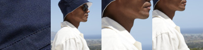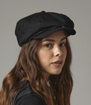 Cotton linen blend. Full cotton lining. Stitched-down peak. Self fabric size adjuster with silver effect buckle. Tear out label.