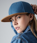 Washed cotton canvas. Faux suede flat peak. 6 panel. Stitched ventilation eyelets. Retro style snapback size adjuster. Tear out label.