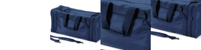 600D polyester. Webbing carry handles. Detachable adjustable shoulder strap. Main zip compartment. Zip pouch pocket. Tear out label. Capacity 20 litres.