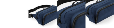 600D polyester. Adjustable webbing belt with clip closure. Large main zip compartment. Headphone port. Rear zip pocket. Internal mesh pocket. Key hook. Capacity 2.5 litres.