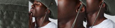 100% heavy washed cotton. Conforms to BS8466. Chin strap with leather toggle. Mesh eyelets. Press stud side turn-ups. Elasticated cord size adjuster with toggle. Offers protection against sunlight UPF50+.